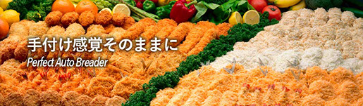 自動パン粉付機の専門メーカーです。「手包み感覚」でのブレッディング機「パーフェクトオートブレッダー」、その他関連機器・合理化機器の設計・製造・販売を行っております。当社の製品は世界で活躍しています。