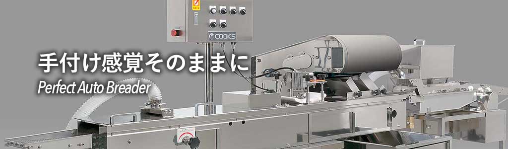 自動パン粉付機の専門メーカーです。「手包み感覚」でのブレッディング機「パーフェクトオートブレッダー」、その他関連機器・合理化機器の設計・製造・販売を行っております。当社の製品は世界で活躍しています。